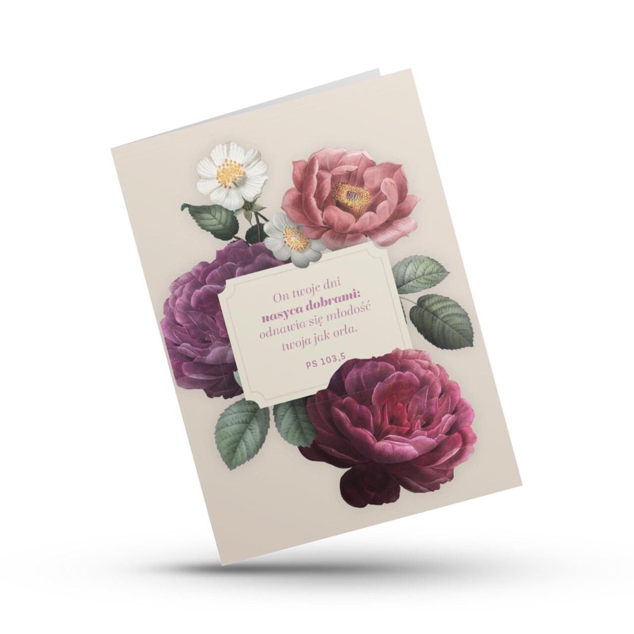 Kartka składana z kopertą – Psalm 103,5 | Kwiaty