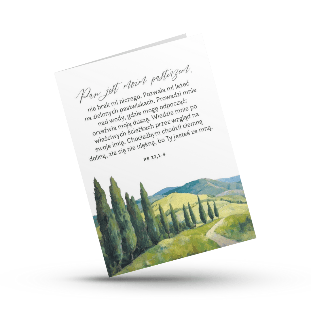 Kartka z cytatem z Psalmu 23 to wyjątkowe przesłanie pokoju, zaufania i Bożej opieki.