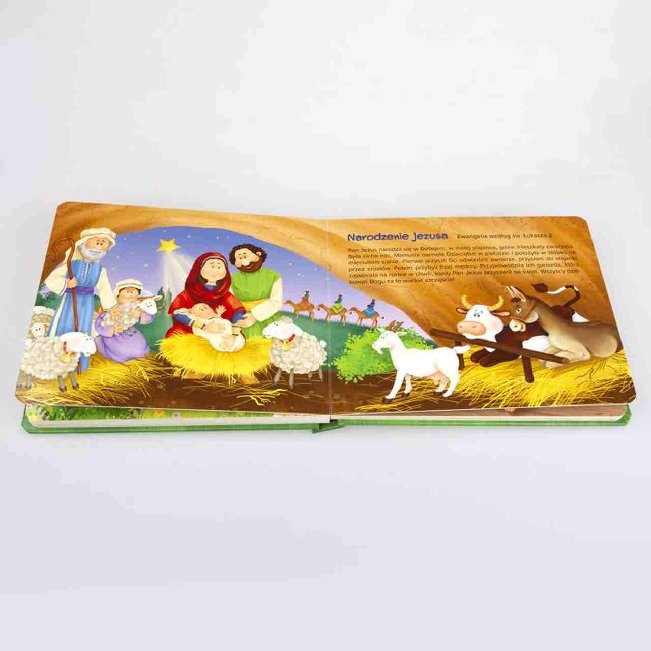 W książce dzieci znajdą najważniejsze opowieści ze Starego i Nowego Testamentu, m.in. historię Adama i Ewy, Noego, Mojżesza, zwaistowania Maryi, narodzenia Jezusa, momentu ukrzyżowania i zmartwychwastania. Dzięki nim maluch pozna nieznane jeszcze prawdy, dostrzeże potęgę i miłość Pana Boga. To doskonała okazja do rozmów z rodzicami czy dziadkami na temat wiary.