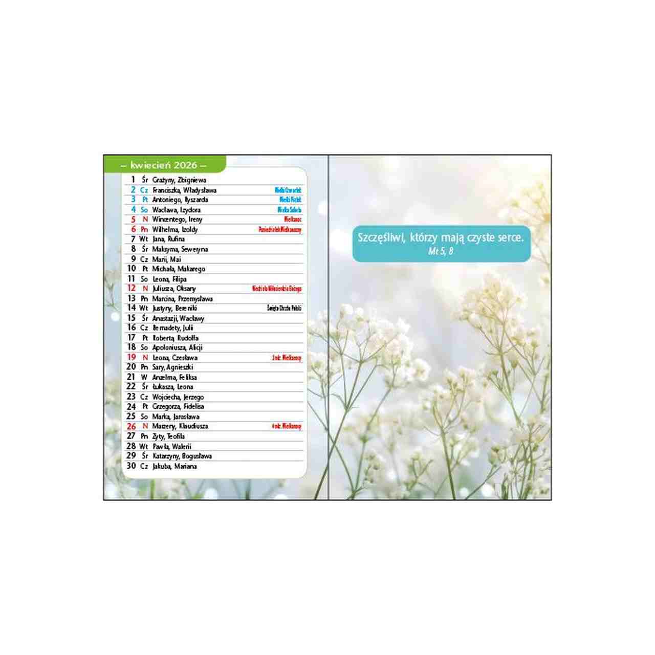 Szukasz małego kalendarza na 2026 rok, który pomoże Ci planować każdy dzień z wiarą i nadzieją? Kieszonkowy kalendarz 2026 to doskonały wybór – poręczny, lekki i funkcjonalny. Idealnie sprawdzi się zarówno w pracy, jak i w życiu codziennym, a jego niewielkie wymiary sprawiają, że możesz mieć go zawsze przy sobie.