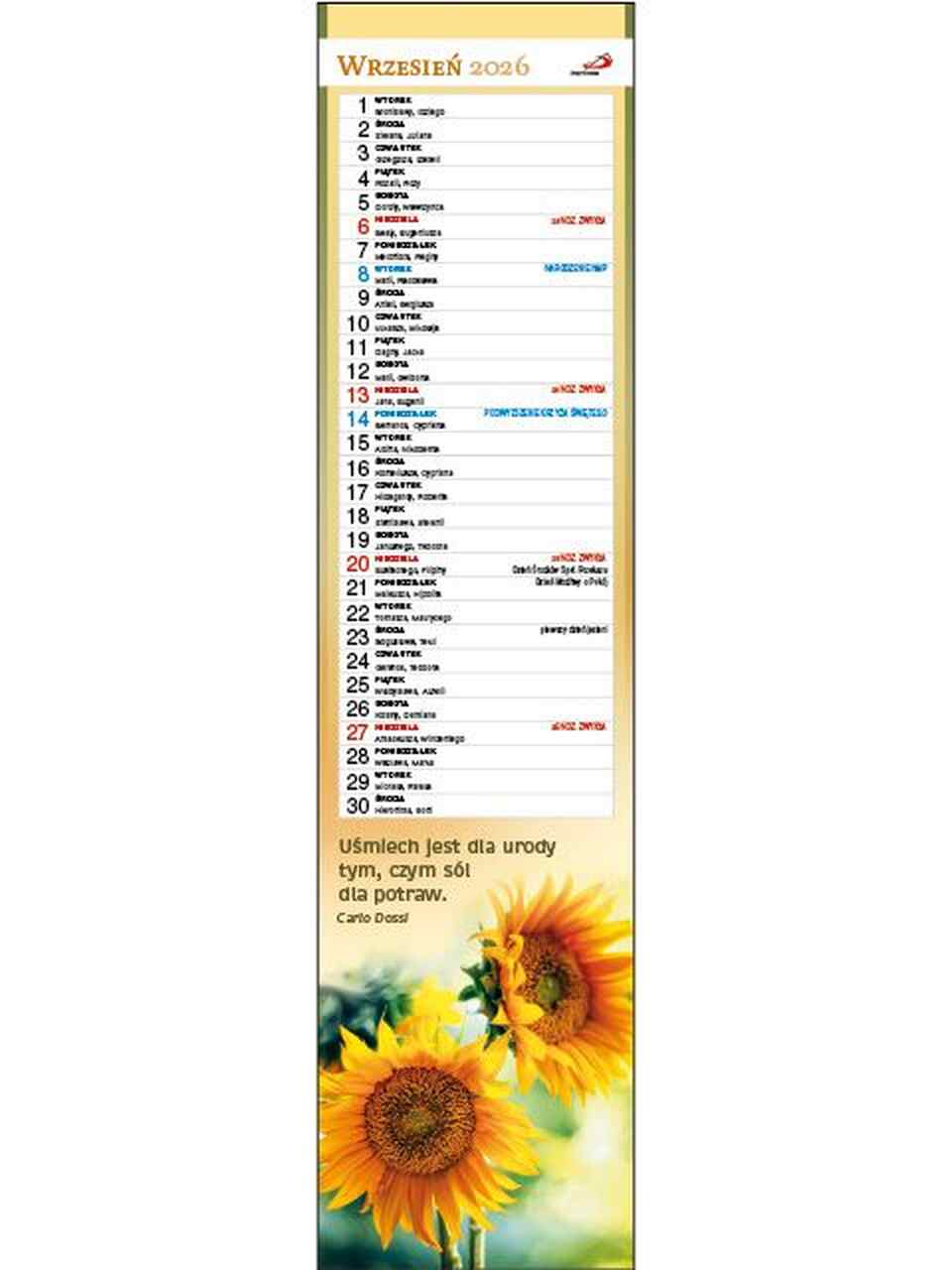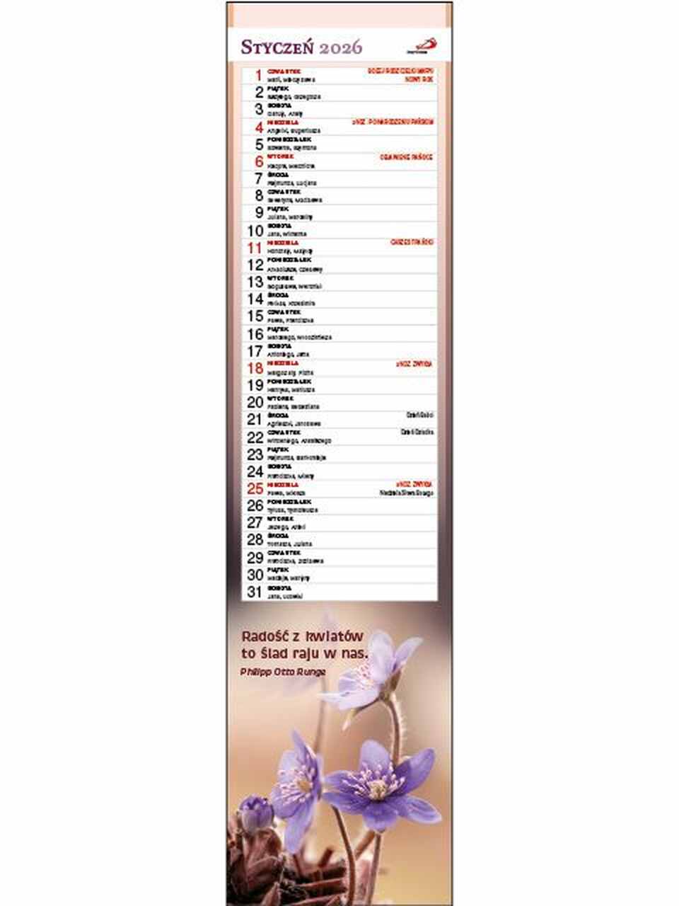 Kalendarz 2026 – „Kwiaty” wąski kalendarz ścienny z pięknymi fotografiami