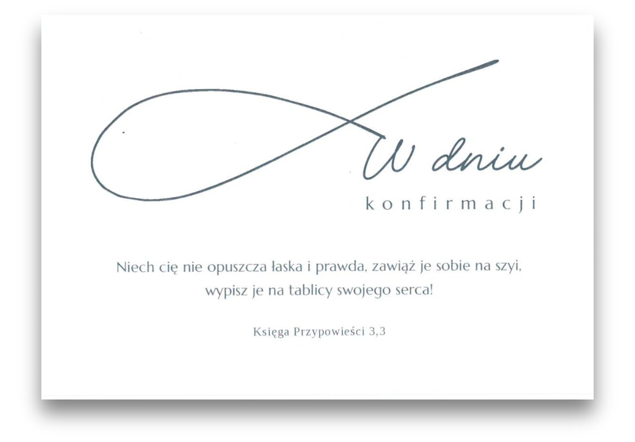 Kartka na konfirmację z miejscem na napisanie życzeń.