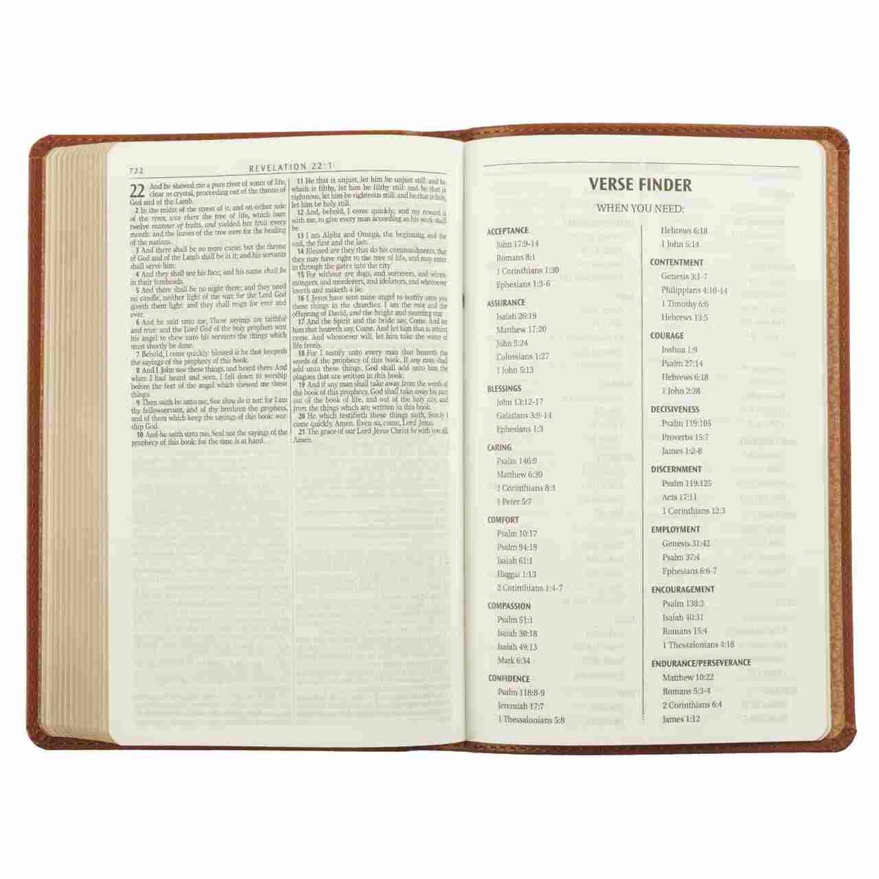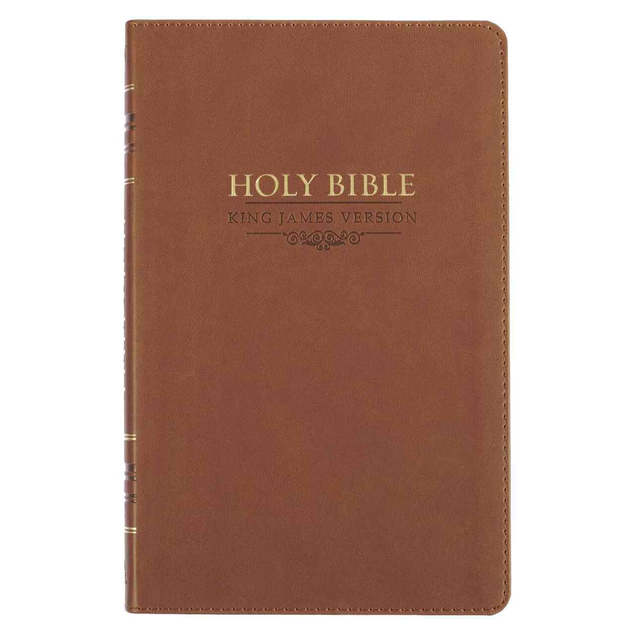 Wyrafinowany wygląd  Saddle Tan Faux Leather Gift Edition King James Version Bible  jest połączony z klasycznym tekstem King James z 1769 roku. Dodaj niedrogie oprawienie, a ta Biblia będzie niezapomnianym prezentem, aby uczcić osiągnięcie lub kamień milowy.