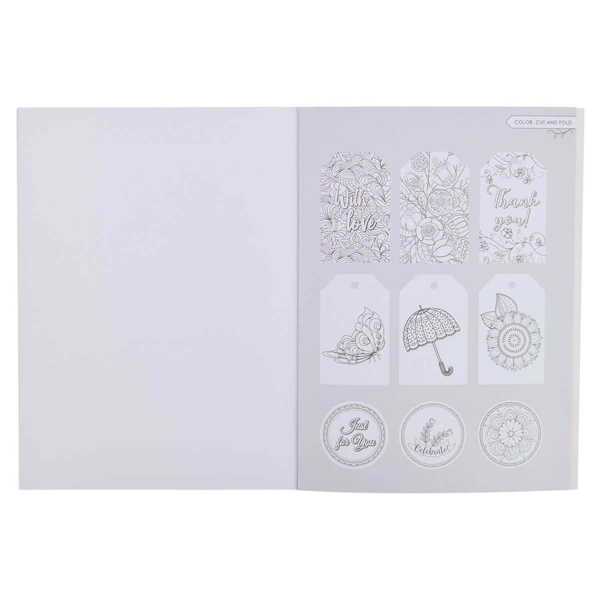 128 perforowanych stron jest wypełnionych rysunkami opartymi na mądrości Pisma Świętego — gotowymi do wypełnienia kolorem za pomocą ołówków, kredek, długopisów żelowych lub markerów. Oprócz rysunków linii na całej stronie dostępnych jest 6 zakładek, 8 małych i 6 dużych kart, które można pokolorować, wyciąć i udostępnić.