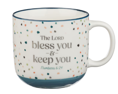 Kubek Bless You and Keep You Blue Confetti to pogodny, codzienny drobiazg, który doskonale nada się jako prezent dla nauczycielki, katechetki lub przyjaciółki. Za każdym razem, gdy sięgnie po kawę, zobaczy Boże błogosławieństwo zapisane w Słowie.