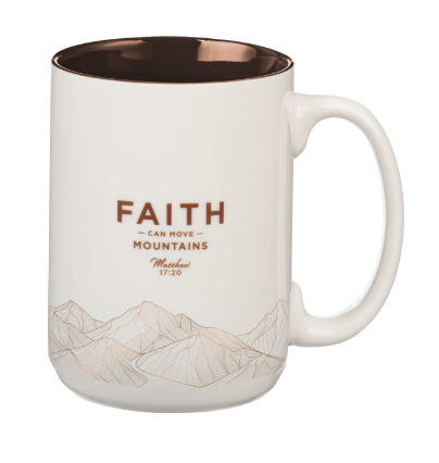 Siła wiary na każdy dzień. Kubek Faith Can Move Mountains zachęca do nieustępliwości i ufności, gdy przed Tobą „góry” do pokonania.