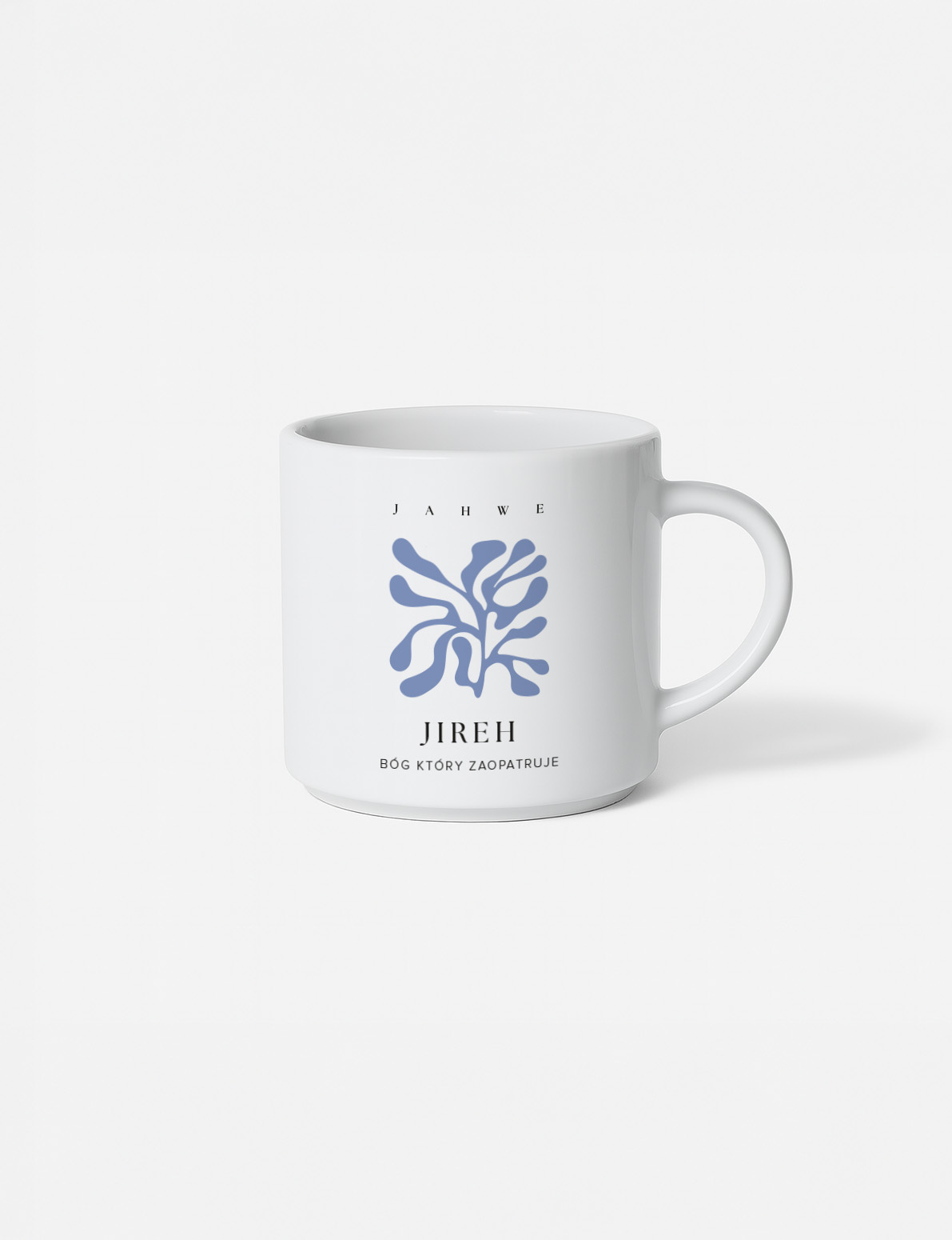 Kubek „Imiona Boga – Jireh” to przypomnienie, że Bóg zna Twoje potrzeby i troszczy się o każdy szczegół. Nadruk zawiera imię „JIREH” oraz tekst: „Bóg, który zaopatruje” nawiązujący do historii Abrahama i Bożego zaopatrzenia.