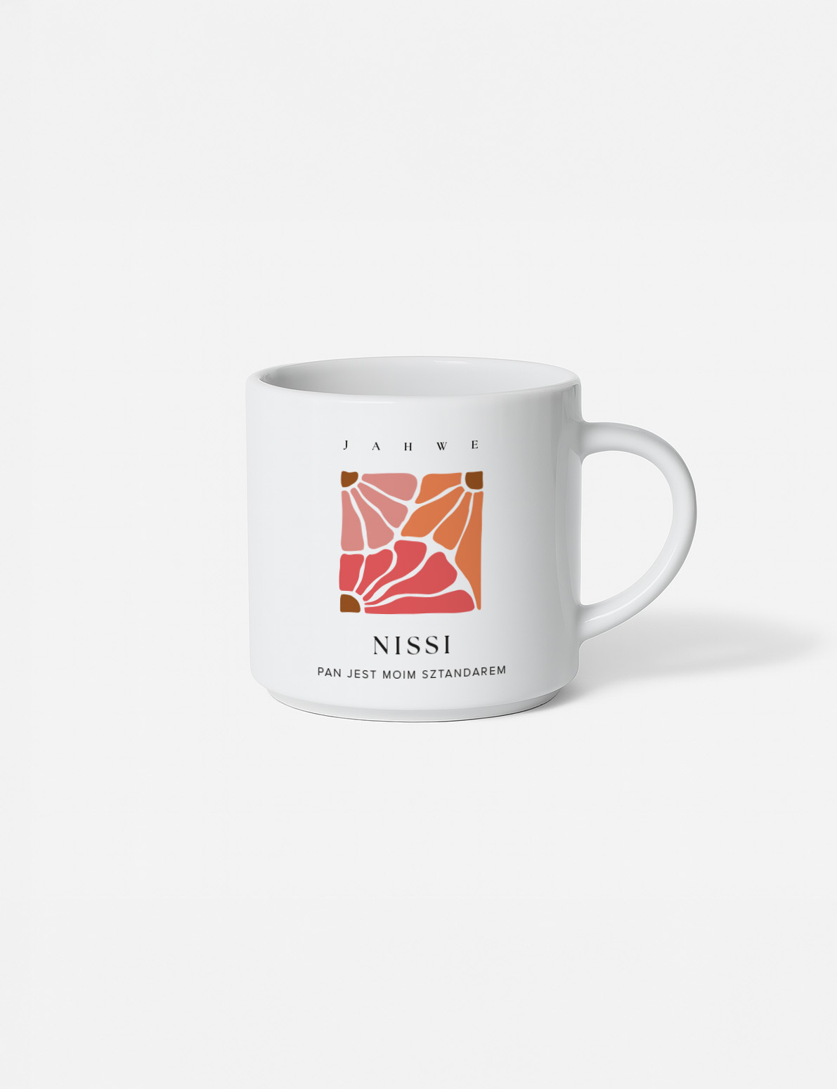 Kubek „Imiona Boga – Nissi” inspiruje do odwagi i ufności. Napis „NISSI” oraz tekst „Pan jest moim sztandarem” odnoszą się do biblijnej prawdy, że to Bóg przewodzi naszym bitwom i jest znakiem zwycięstwa.
