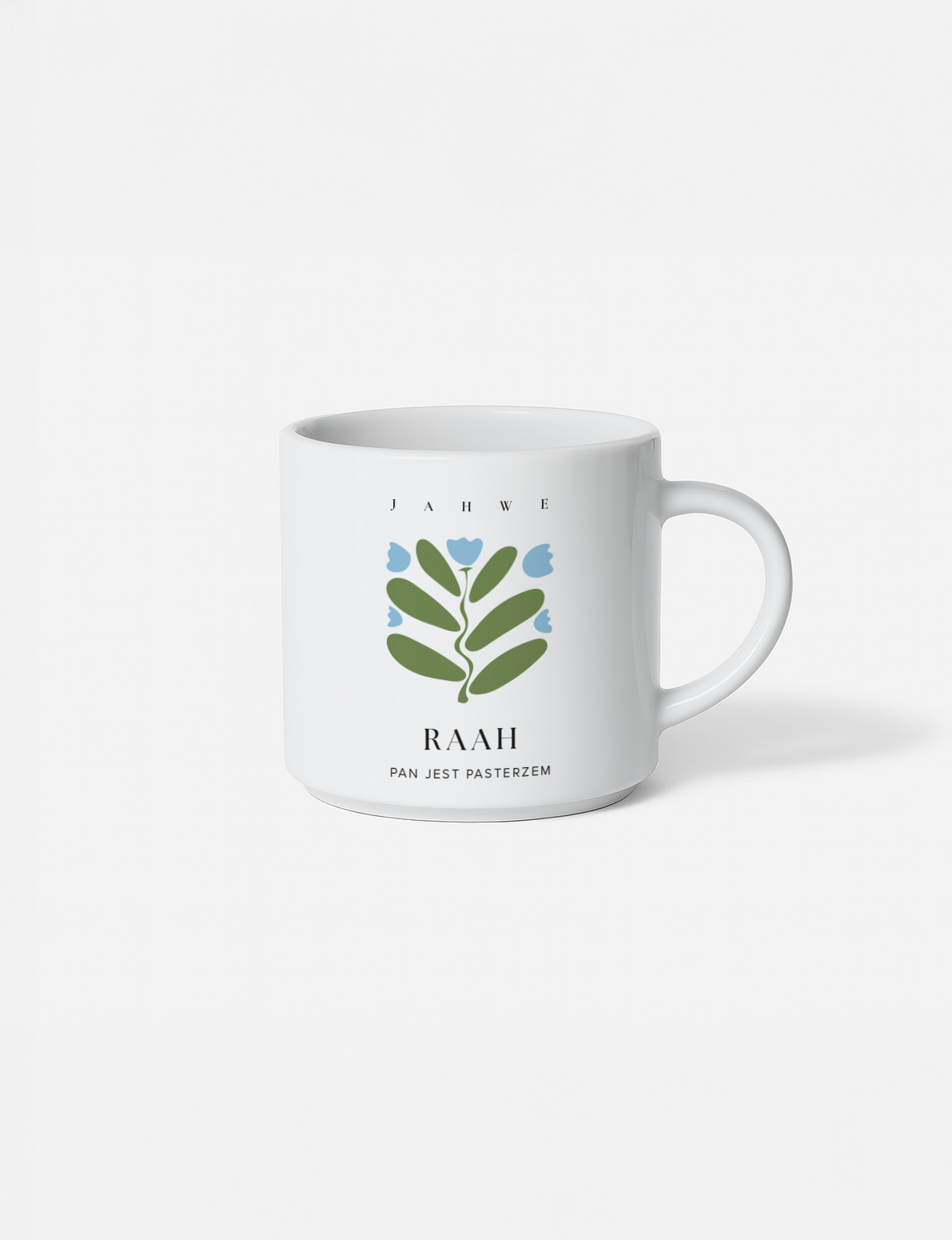 Kubek „Imiona Boga – Raah” to uroczy i poruszający sposób, by codziennie pamiętać, że Bóg jest Twoim Pasterzem. Słowo „RAAH” i fraza „Pan jest pasterzem” przywołują obraz opieki, prowadzenia i bliskości.