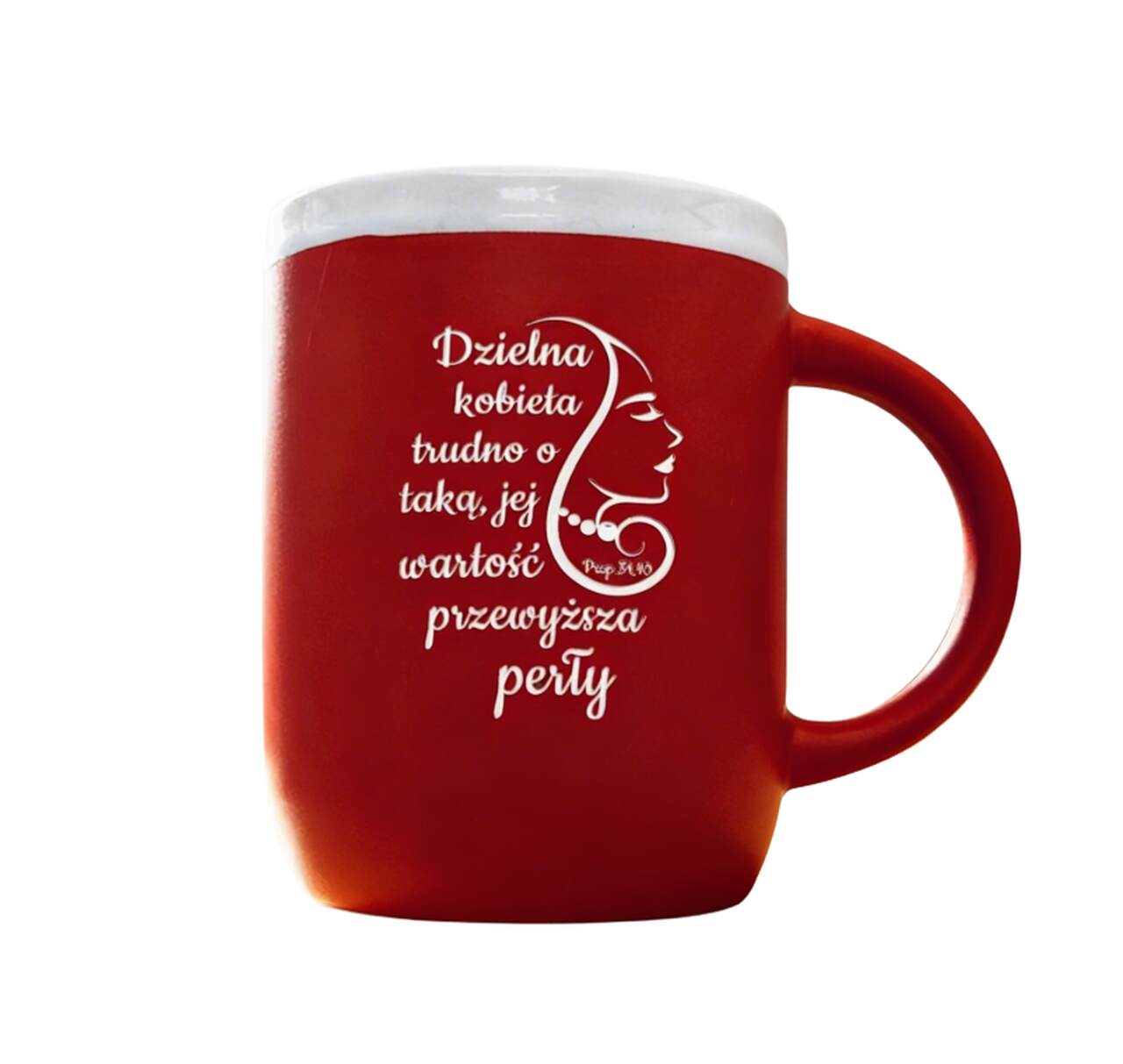 Każdy łyk ulubionego napoju z tego naczynia to okazja do refleksji nad słowami z Księgi Przypowieści 31,10, które głoszą, że wartość dzielnej kobiety przewyższa perły. Produkt o pojemności 310 ml charakteryzuje się nowoczesnym, matowym wykończeniem w kolorystyce czerwono-białej oraz precyzyjnym rysunkiem profilu kobiety. Ta analiza piękna i siły została zamknięta w formie odpornej na mycie w zmywarkach, co sprawia, że ten praktyczny poradnik wdzięczności o wysokości 100 mm jest niezwykle trwały i funkcjonalny w codziennym użytkowaniu.