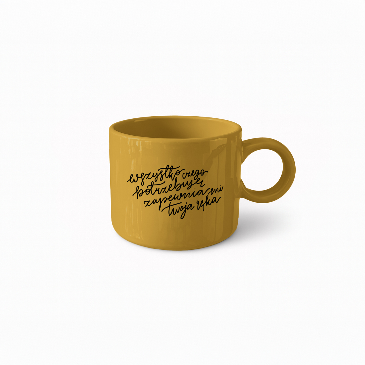 Ten wyjątkowy kubek przypomina o Bożej trosce. Na kubku widnieje napis „Wszystko czego potrzebuję zapewnia mi Twoja ręka”. To piękny, prosty i mocny przekaz, który dodaje otuchy każdego dnia.