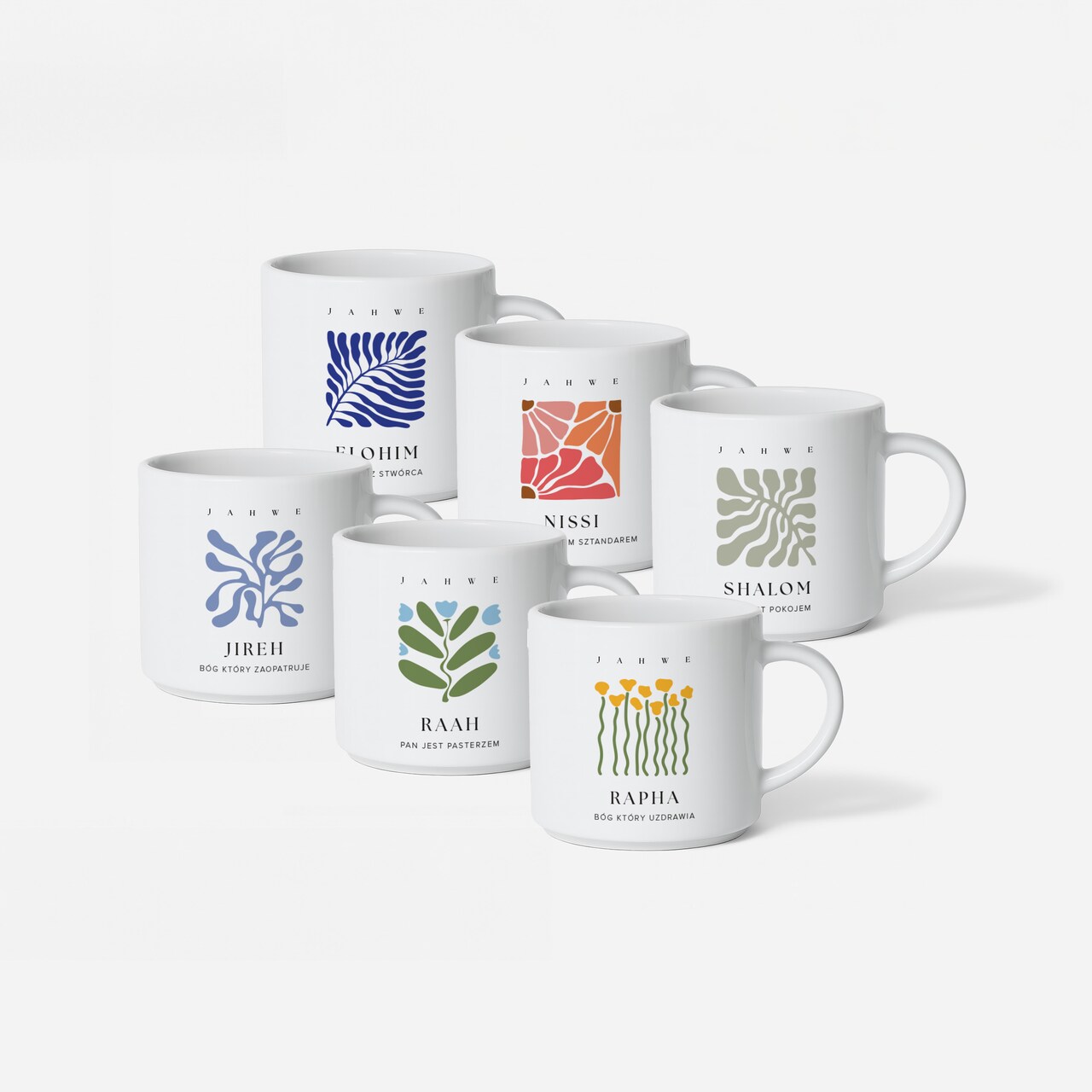Poznaj wyjątkowy komplet 6 kubków ceramicznych z serii „Imiona Boga”, inspirowanej hebrajskimi określeniami opisującymi charakter i naturę Boga. Każdy kubek to osobne przesłanie nadziei, pokoju, zaopatrzenia i opieki – piękna duchowa inspiracja na co dzień.