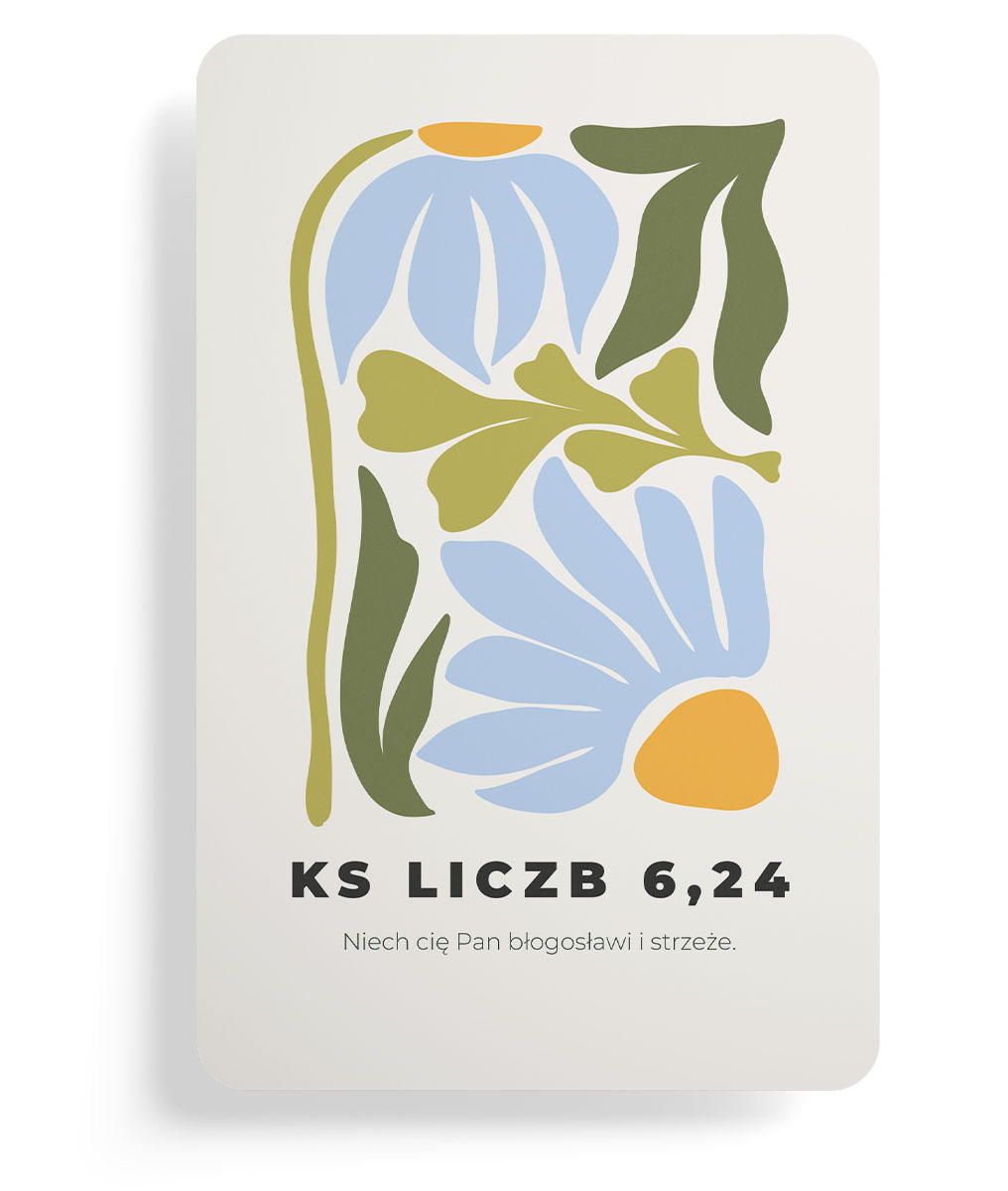 Piękny magnes z cytatem z Pisma Świętego – Księga Liczb 6,24. Minimalistyczny magnes z motywem roślinnym w pastelowych kolorach to codzienne przypomnienie o Bożym błogosławieństwie i opiece.