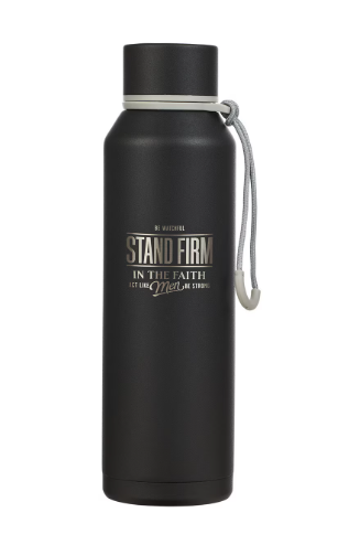 Dodaj odrobinę motywacji do codziennego życia dzięki tej stylowej, wytrzymałej butelce na wodę, która inspiruje wersetem z Księgi Jozuego: „Bądź silny i odważny”. Idealna dla osób aktywnych, szukających niezawodnego rozwiązania na długie dni w pracy, szkole lub podczas podróży.