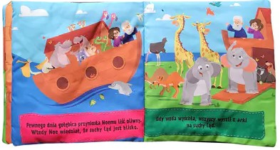 Miękka i przytulna książeczka materiałowa z historią biblijną dla dzieci.