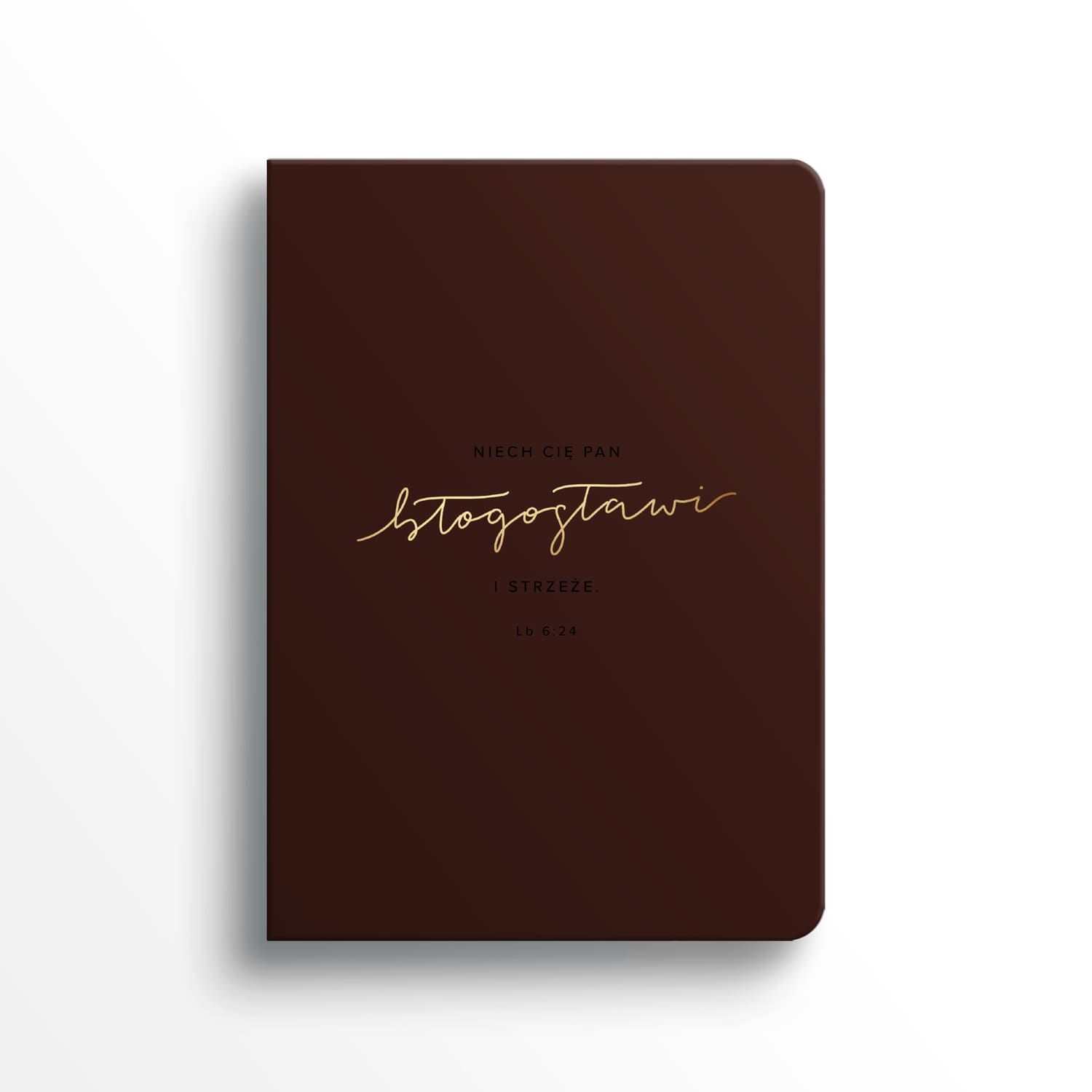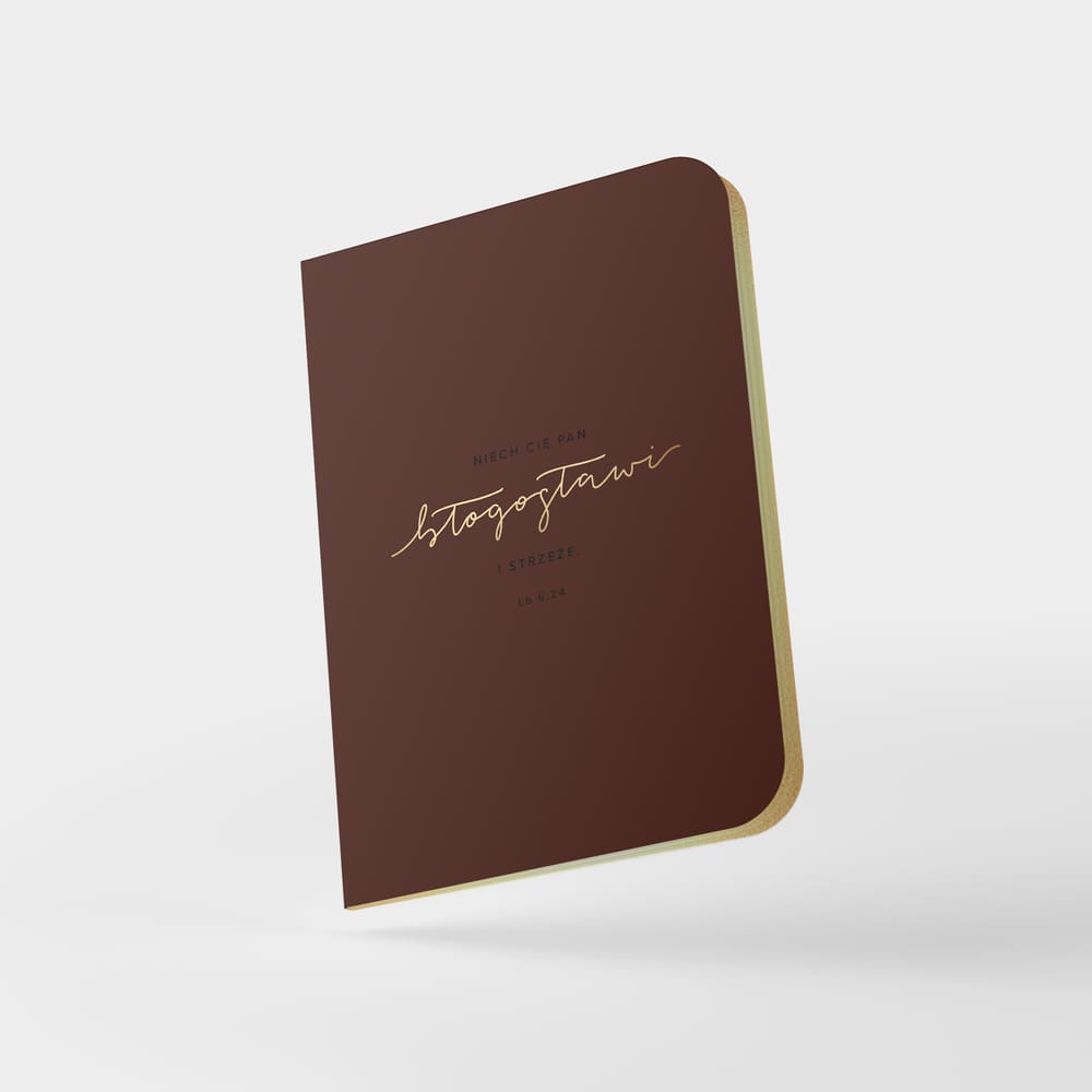 Minimalistyczny i elegancki notatnik w głębokim brązie. Złote tłoczenie z błogosławieństwem z Lb 6,24 nadaje mu klasy i ponadczasowości. To notes, który sprawdzi się zarówno w pracy, jak i w codziennych zapiskach duchowych.
