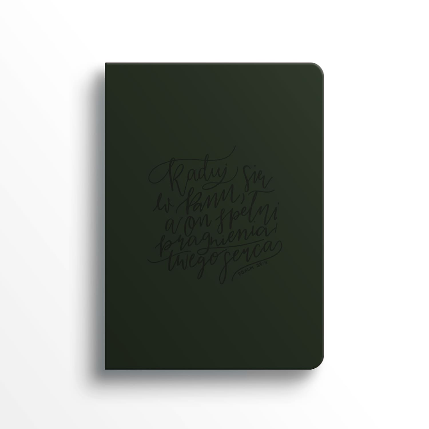 Elegancki i minimalistyczny notatnik z ekoskóry „Raduj się w Panu” to piękny wybór dla osób, które lubią prostotę i minimalistyczny styl. Wytłaczany napis na okładce tworzy subtelny efekt, a głęboki, zielony kolor nadaje notesowi szlachetnego charakteru.