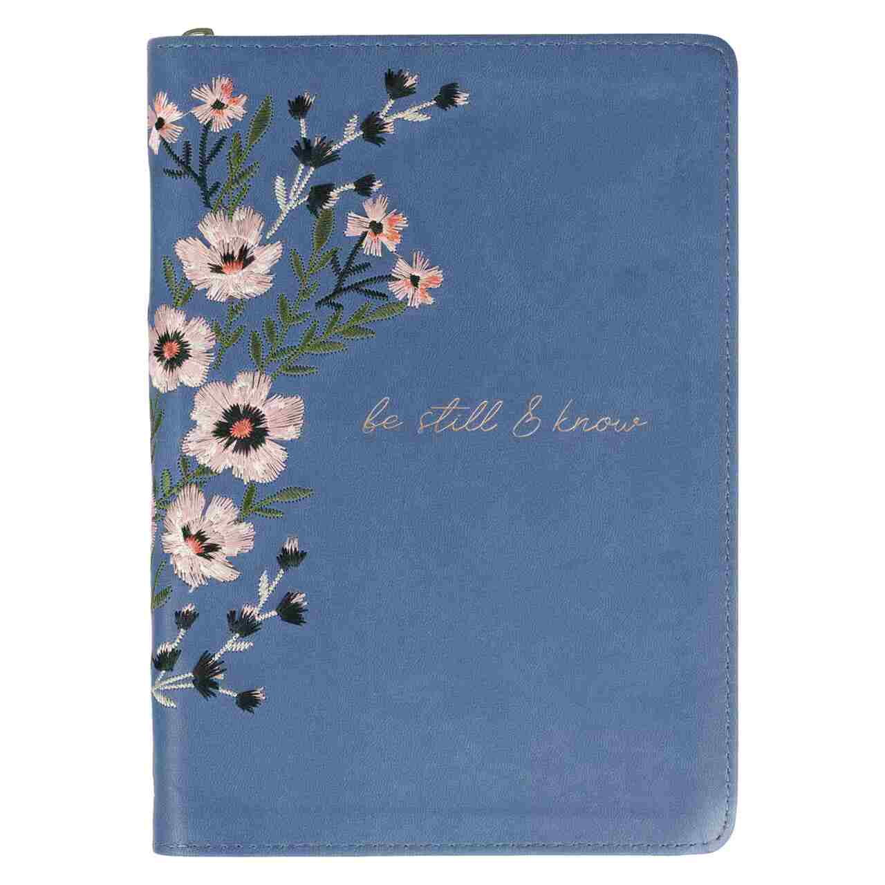Dzięki delikatnemu kobiecemu wzornictwu i zachęcającemu tytułowi, Be Still Floral Embroidered Blue Faux Leather Classic Journal z zapięciem na suwak jest idealnym prezentem dla Twojej dziewczyny, która uwielbia pisać lub robić notatki. Zapakuj Be Still Floral Embroidered Blue Faux Leather Classic Journal z zapięciem na suwak jako prezent urodzinowy, który doceni przyjaciółka, mama lub babcia.