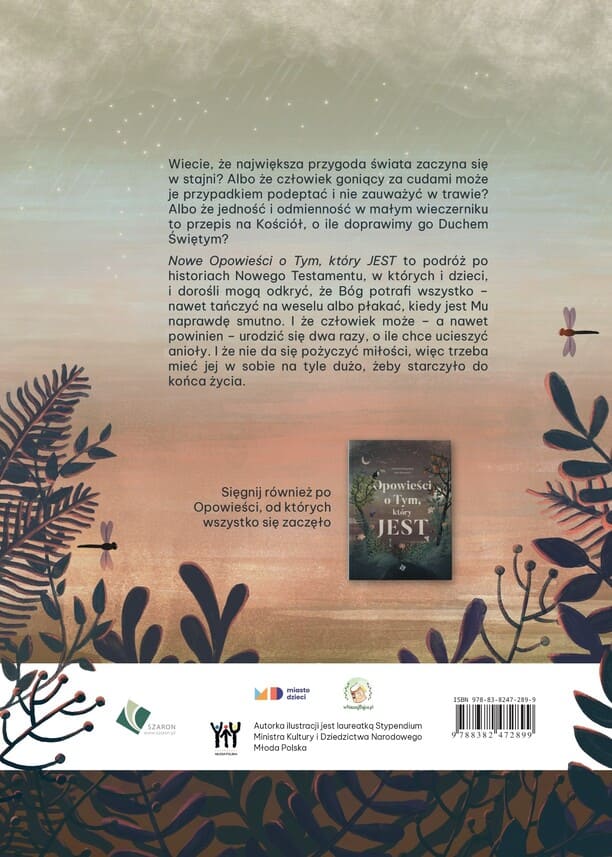 Nowe Opowieści o Tym, który JEST to podróż po historiach Nowego Testamentu, w których i dzieci, i dorośli mogą odkryć, że Bóg potrafi wszystko – nawet tańczyć na weselu albo płakać, kiedy jest Mu naprawdę smutno. I że człowiek może – a nawet powinien – urodzić się dwa razy, o ile chce ucieszyć anioły. I że nie da się pożyczyć miłości, więc trzeba mieć jej w sobie na tyle dużo, żeby starczyło do końca życia.