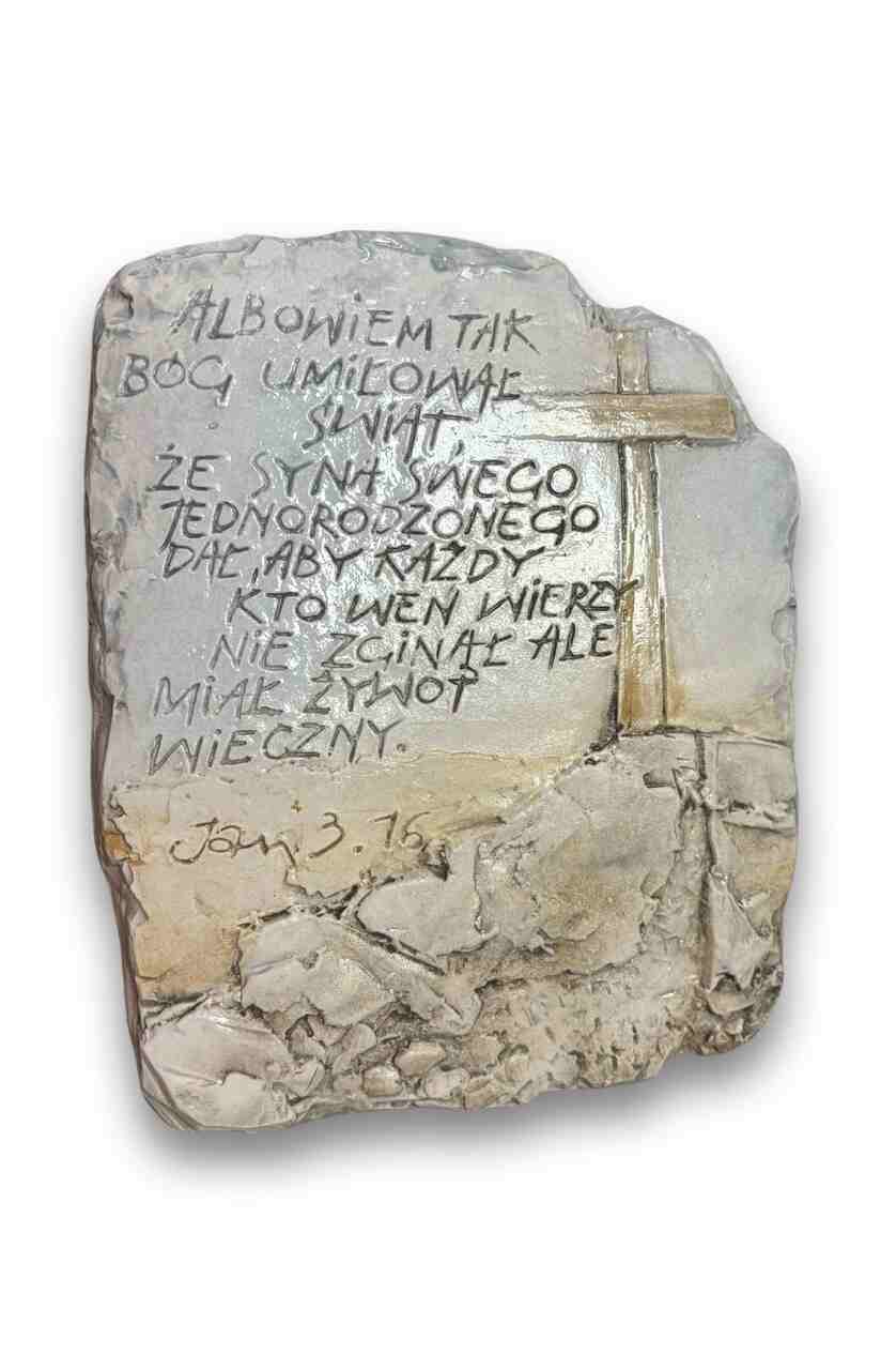 Ceramiczne płytki z wersetami są autorskim dziełem wykonanym przez artstów plastyków. Każda płytka ma taka samą czcionkę i nadruk jednak jako rękodzieło rózni się wykońceniem i delikatnie kolorem.