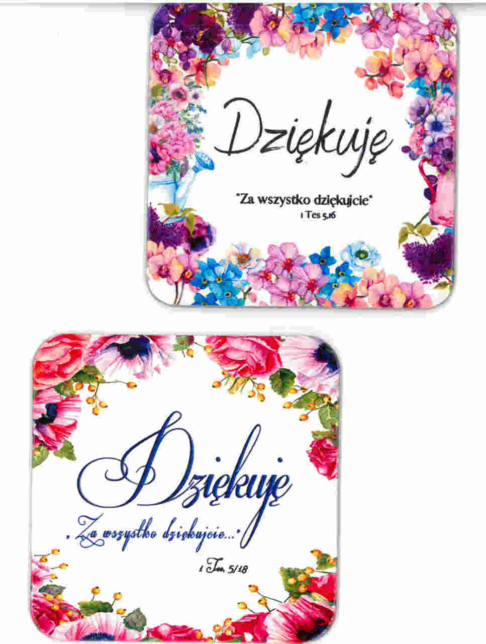 Podstawka korkowa Na podstawce widnieje napis: Dziękuję „Za wszystko dziękujcie” Podstawki pod kubek wykonane są z naturalnego korka, wykończone błyszczącą folią.