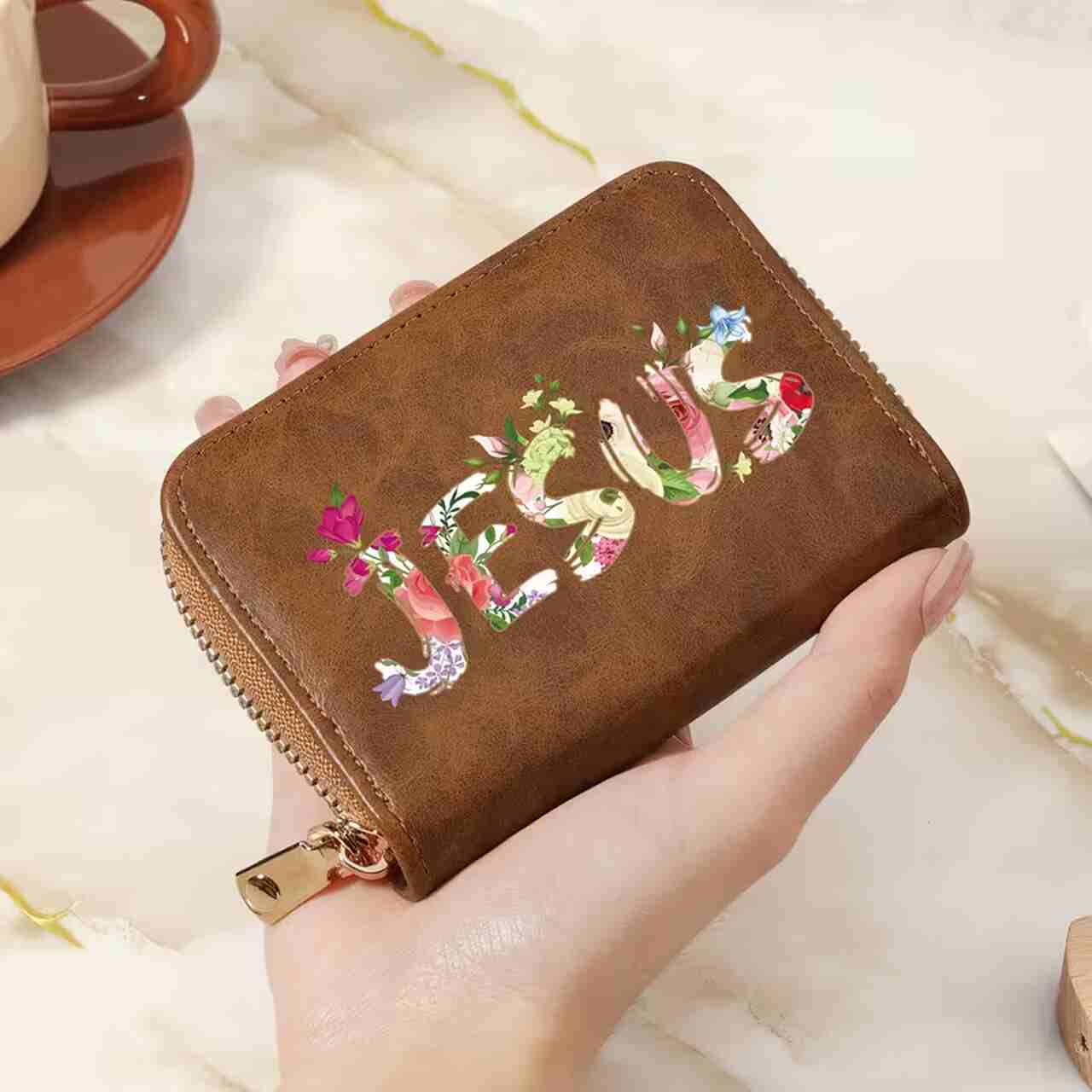 Portfel – Jesus – zamek – brązowy