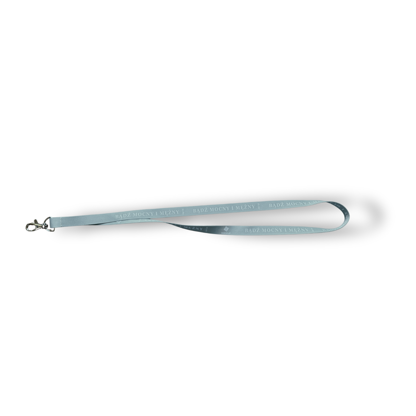 Stylowa smycz do kluczy z napisem „Bądź mocny i mężny” – idealna dla mężczyzny.