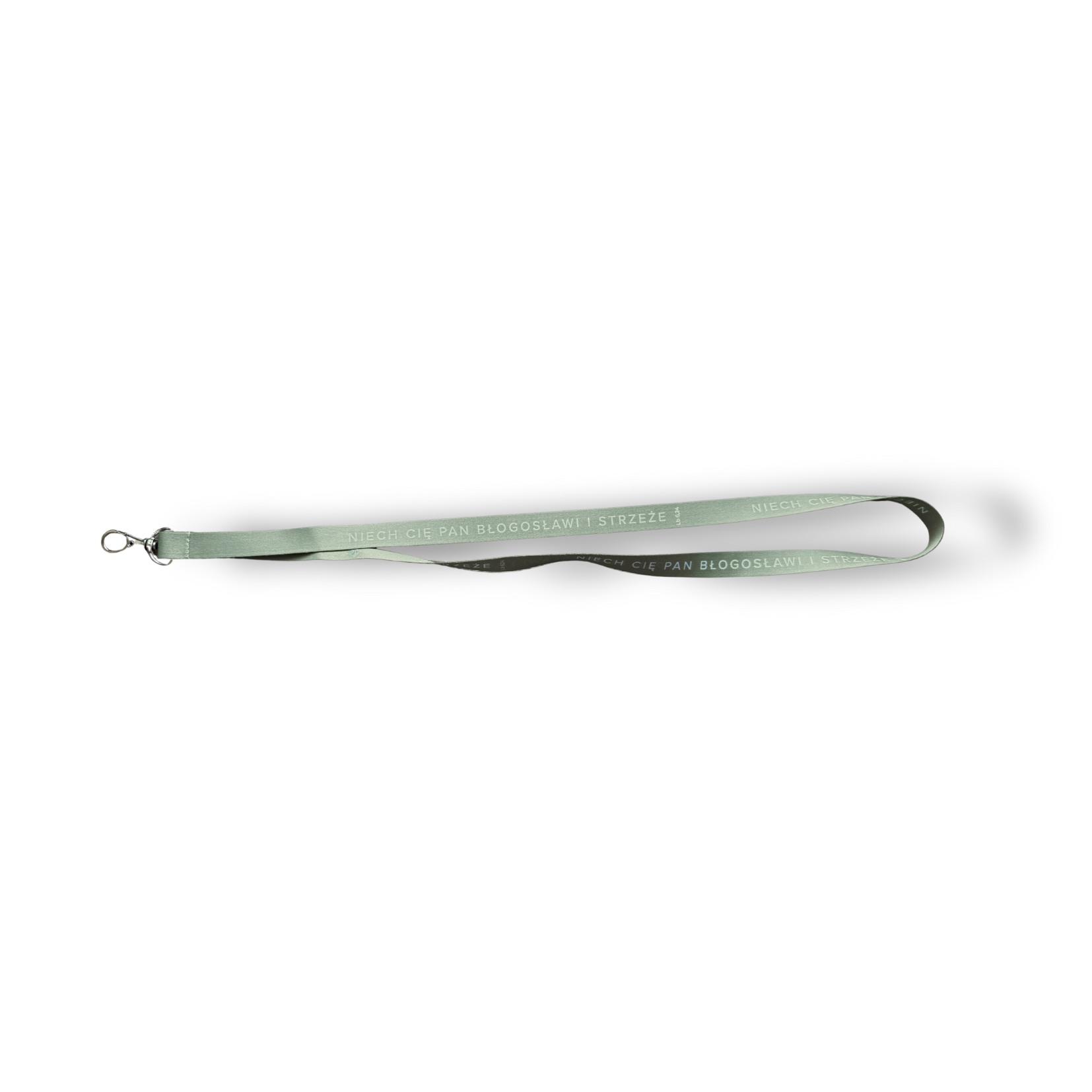 Zielona smycz do kluczy z cytatem z Biblii – „Niech Cię Pan błogosławi i strzeże”. Funkcjonalna i pełna duchowego przesłania.