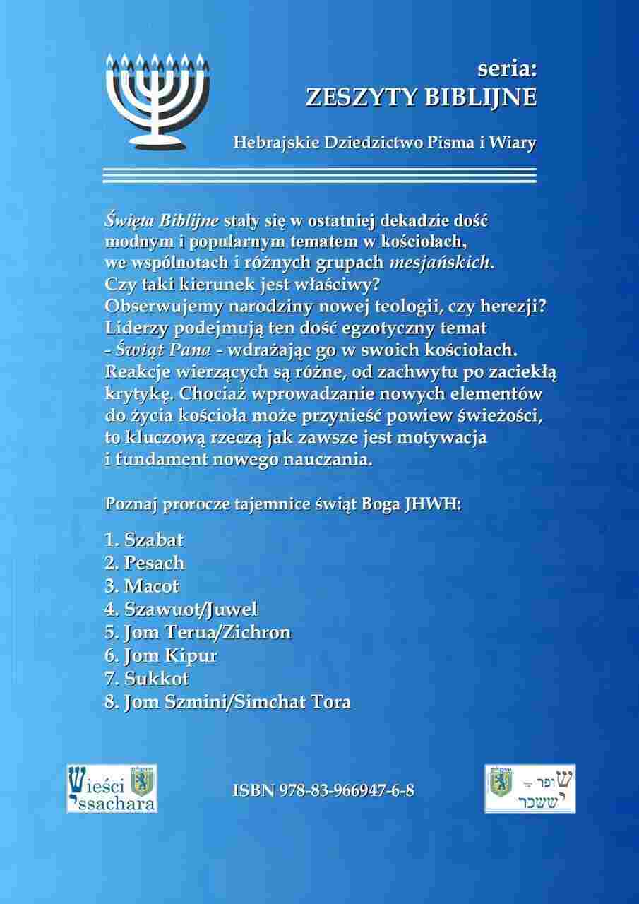 W publikacji „Święta Biblijne Boga JHWH, prorocze spojrzenie” Jacek Szeliga podejmuje jeden z najbardziej żywych i kontrowersyjnych tematów współczesnej duchowości – obchodzenie biblijnych świąt Boga JHWH. W ciągu ostatniej dekady zagadnienie to zyskało ogromną popularność w kościołach, we wspólnotach mesjańskich i grupach zainteresowanych hebrajskimi korzeniami wiary. Z jednej strony pojawia się zachwyt nad odnowieniem tradycji Izraela, z drugiej – niepokój i oskarżenia o herezję.