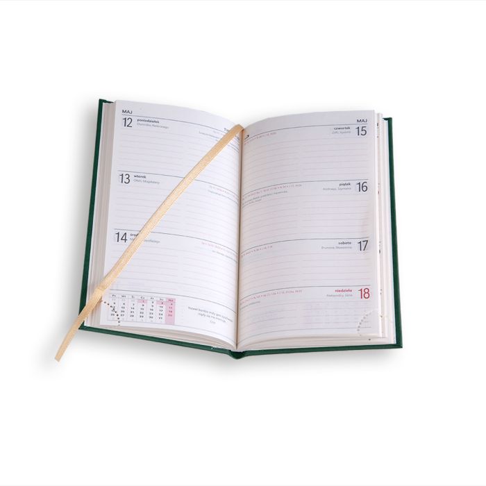 Każdy tydzień w kalendarzu rozpisano na dwóch stronach, co umożliwia przejrzyste planowanie i wygodną kontrolę wszystkich zadań. Poręczne wymiary – 9 cm x 15,3 cm – sprawiają, że terminarz zmieści się w każdej torebce czy plecaku, dzięki czemu możesz mieć go zawsze przy sobie. Dodatkowe udogodnienia, takie jak tasiemka-zakładka oraz perforowane narożniki kartek, ułatwiają szybkie odnalezienie najważniejszych notatek i terminów.