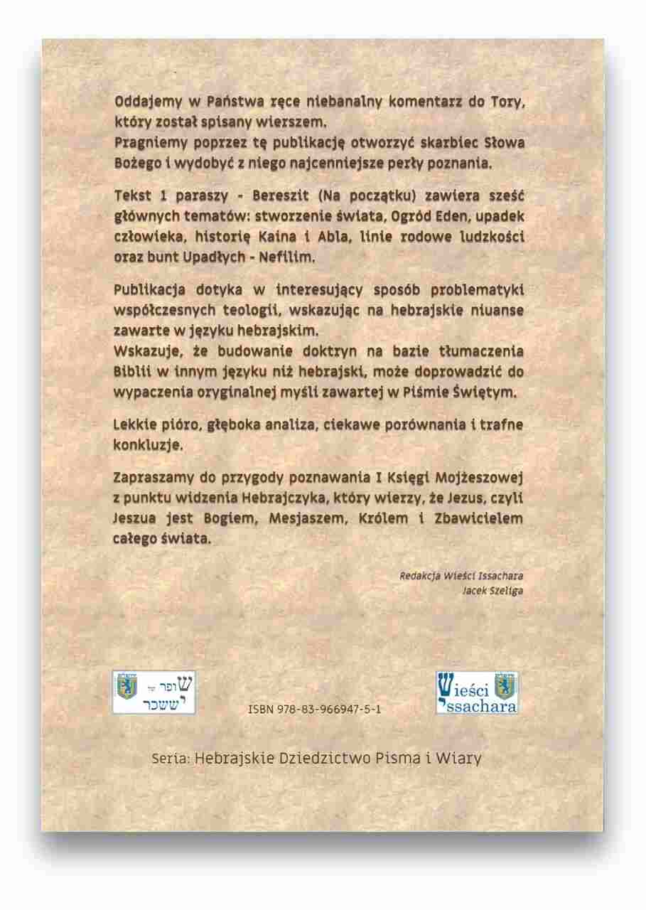 „Tora wierszem” to unikalne dzieło autorstwa Jacka Szeligi i Izaaka Jonatana Barucha, które stanowi nowatorskie podejście do tradycyjnego tekstu biblijnego. Książka prezentuje Torę, czyli Pięcioksiąg Mojżesza, w formie poetyckiej, zachowując jednocześnie głębię i znaczenie oryginału.