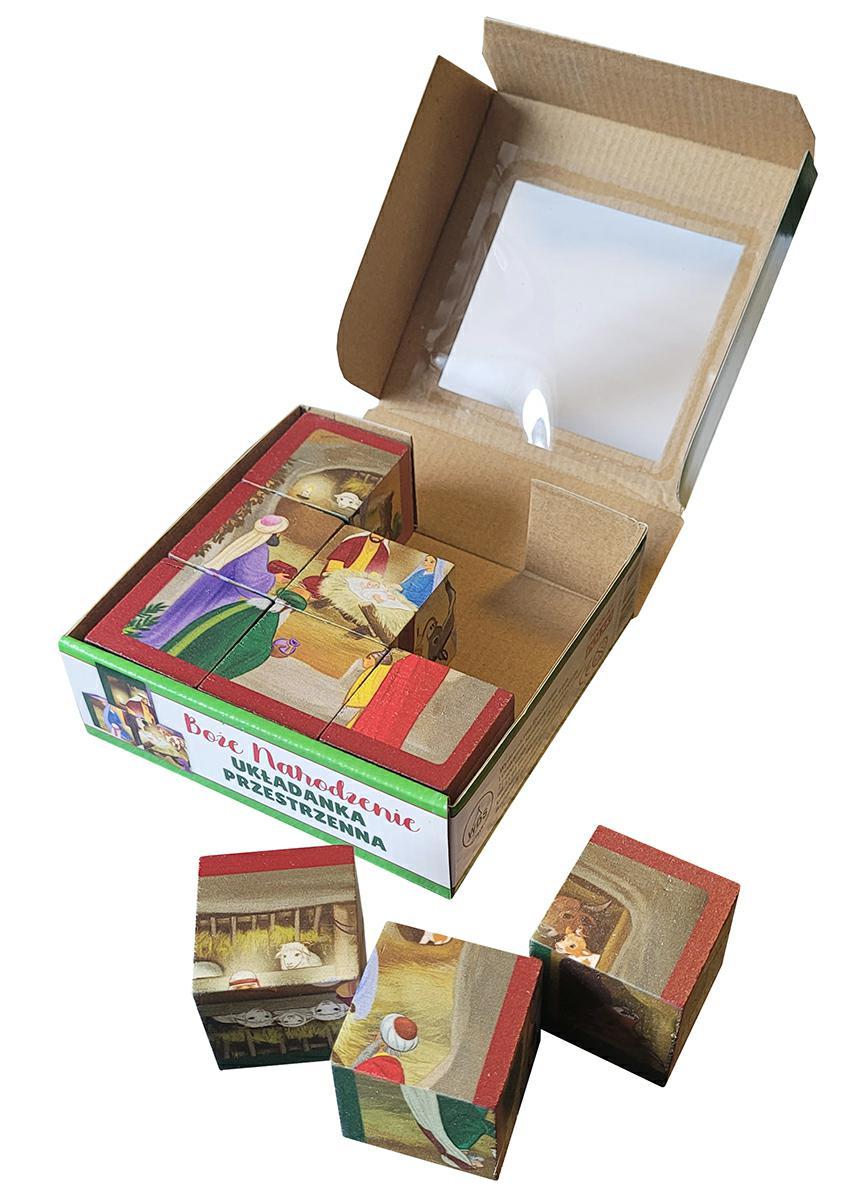 Przestrzenna układanka w formie drewnianych klocków to nauka i zabawa w jednym! Rozwija zdolności manualne, kształtuje wyobraźnię przestrzenną