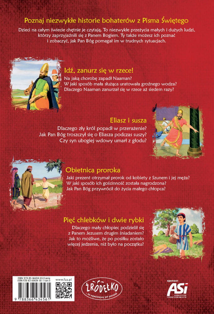 Poznaj niezwykłe historie bohaterów z Pisma Świętego! To niezwykłe przeżycia małych i dużych ludzi, którzy zaprzyjaźnili się z Panem Bogiem. Ty także możesz ich poznać i zobaczyć, jak Pan Bóg pomagał im w trudnych sytuacjach. Sprzedająca się w tysiącach egzemplarzy seria, jest uwielbiana przez dzieci na całym świecie. Pięknie ilustracje zachwycą każde dziecko, a historie wleją w dziecięce serduszka zaufanie i pewność miłości Bożej. Każda historia opatrzona jest również wskazówkami dla rodziców do dalszej rozmowy z dzieckiem.